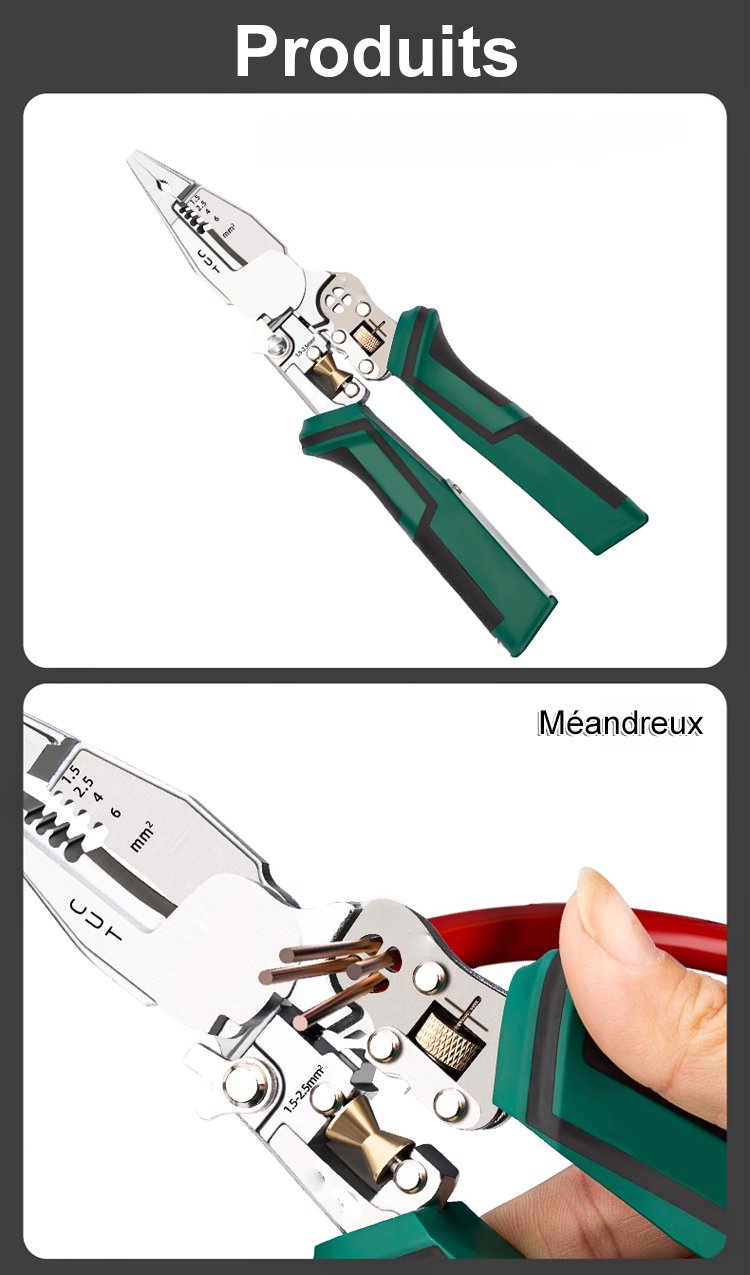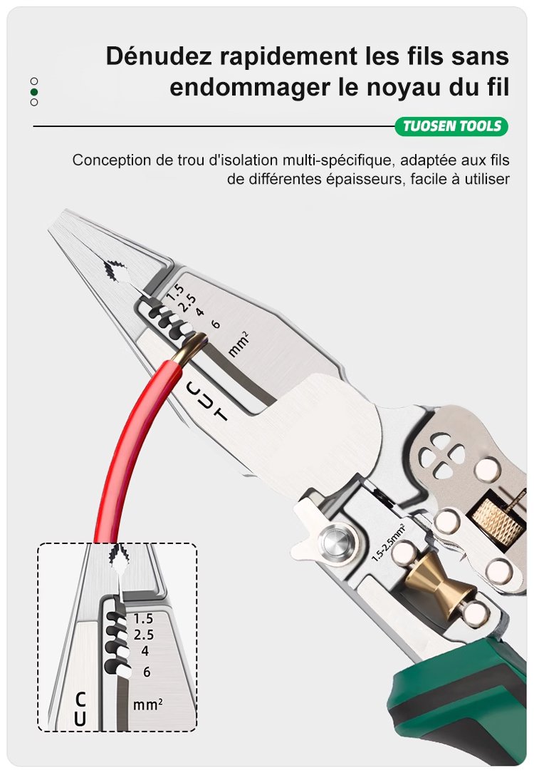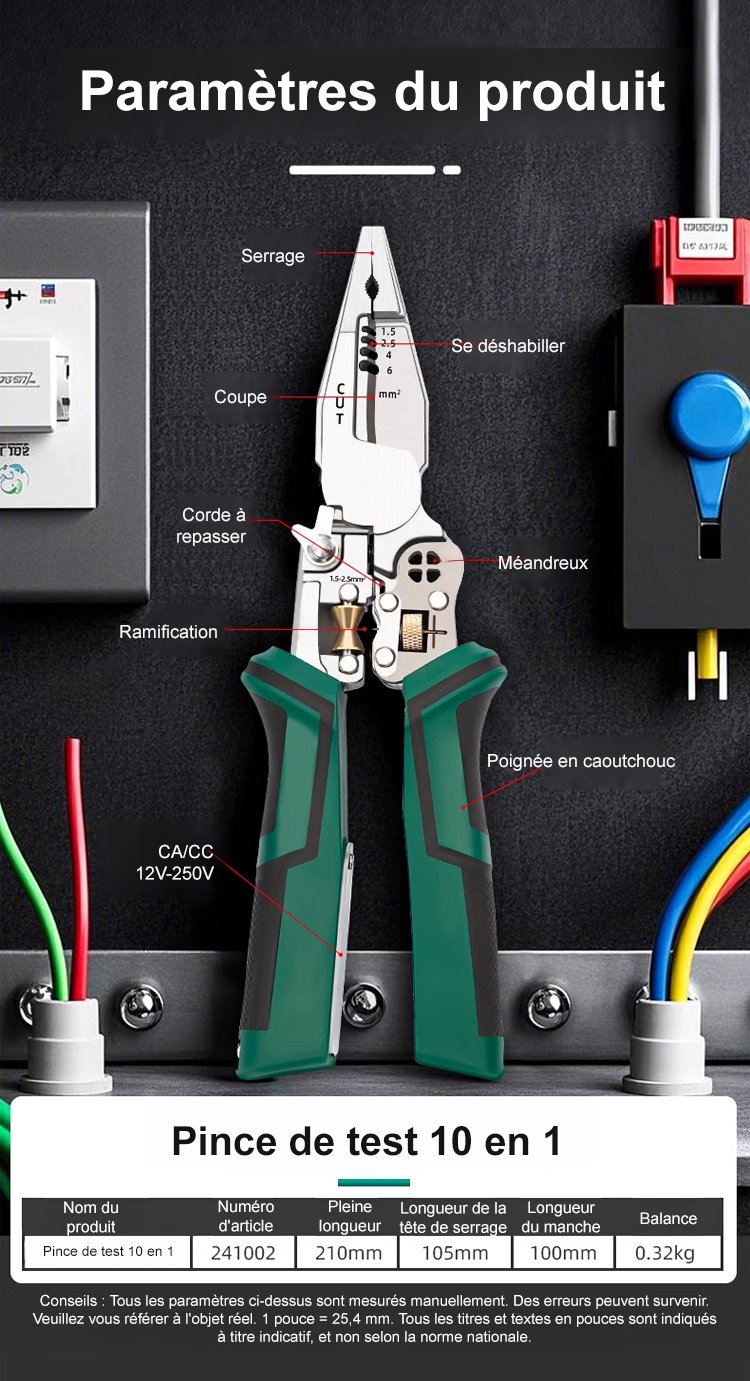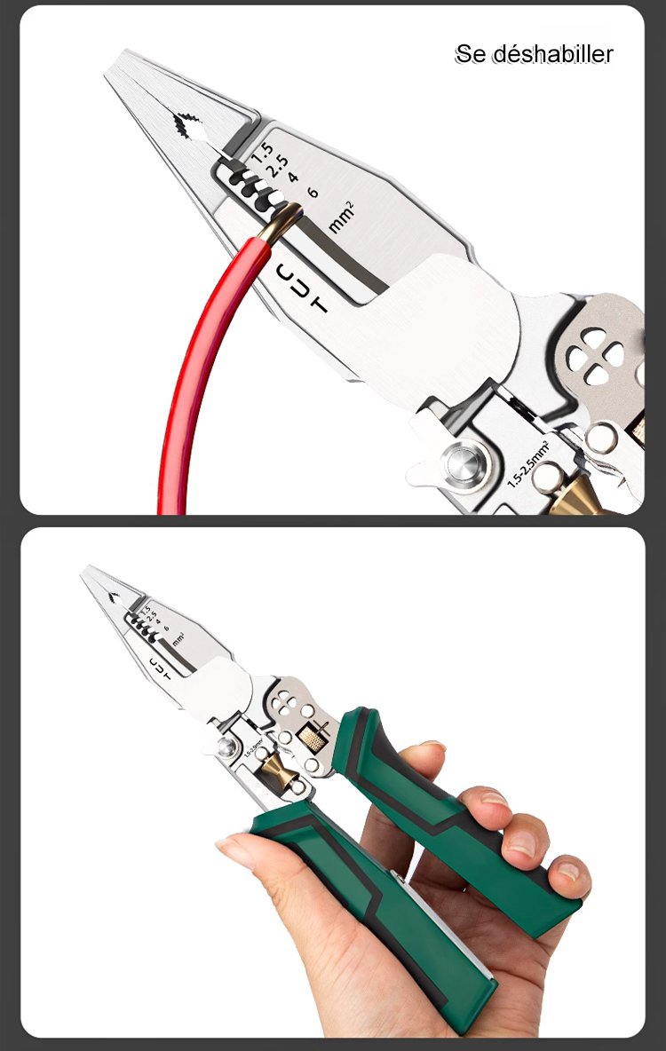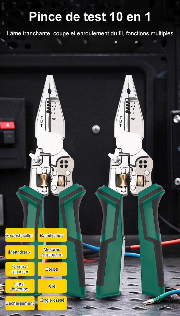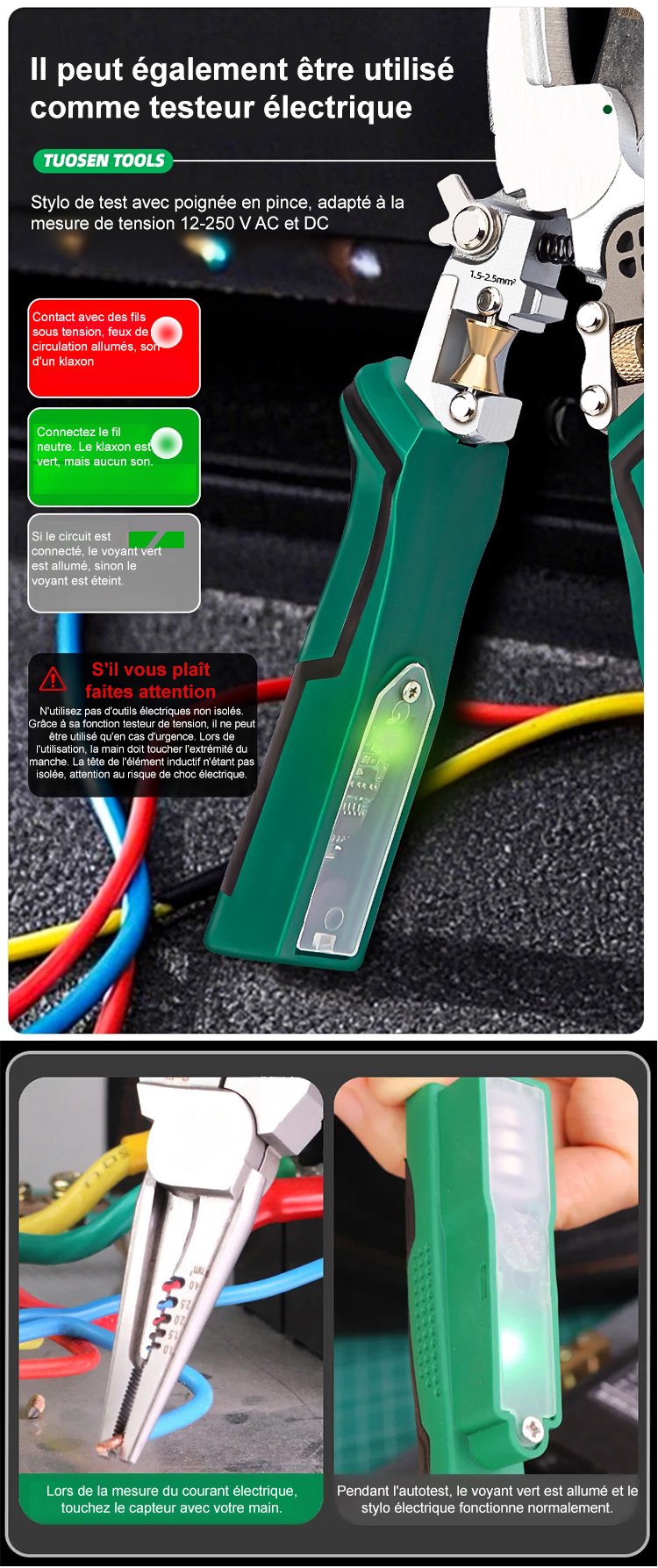 【Dix en un】Pince à dénuder multifonctionnelle à bec effilé avec testeur de tension - Stylo électrique + pince à dénuder, 2+1 fonctions pratiques
